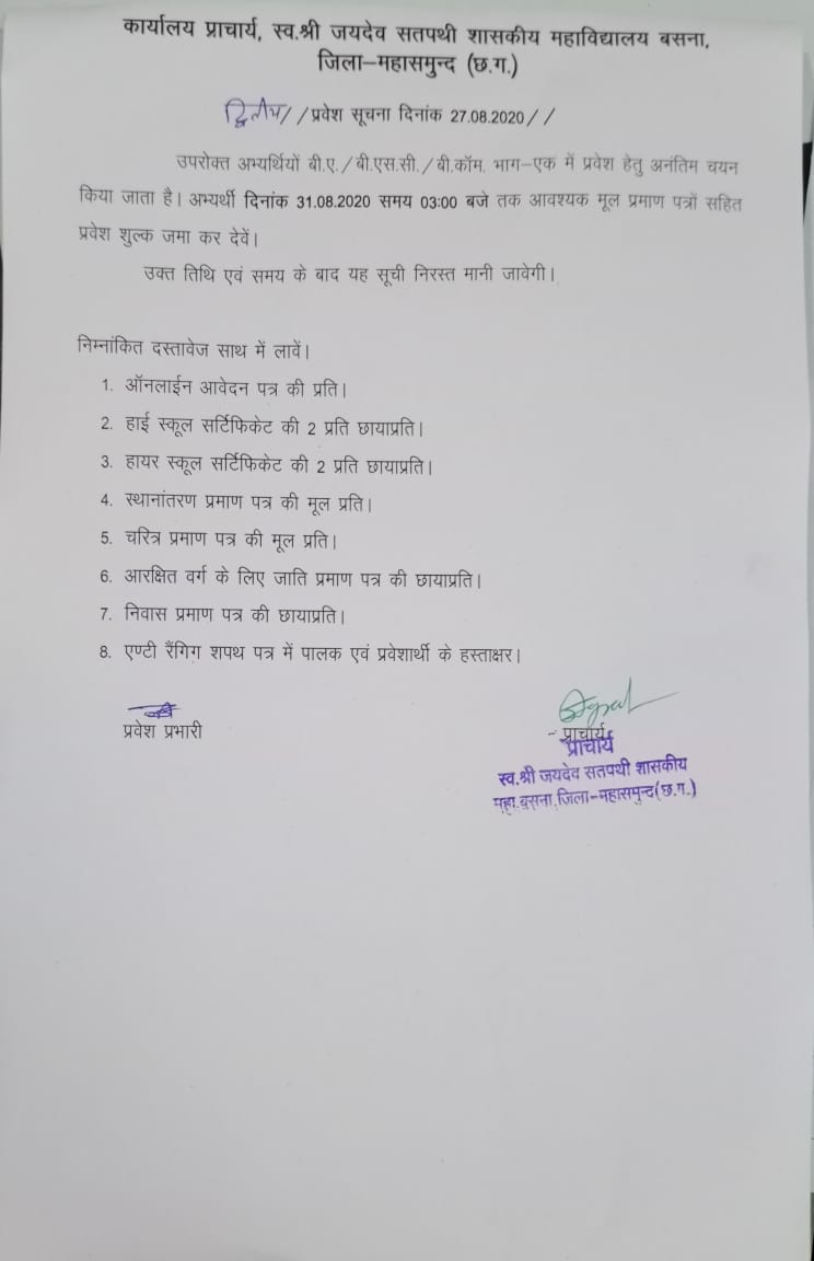 Admission 2020-2021 Important documents for admission